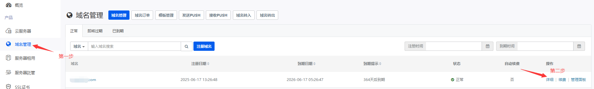 登录会员中心后点击 域名管理 ---- 详细 查看域名独立平台的管理账号和密码 (请不要把域名和管理账号搞混)